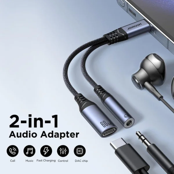 Designed for modern USB-C devices, the JOYROOM 2-in-1 Audio Adapter delivers both high-quality audio and fast charging in one compact design. Ideal for gamers, music lovers, and multitaskers, this dual adapter lets you enjoy your favorite tunes or handle calls while powering up your device—all without compromising performance or clarity.